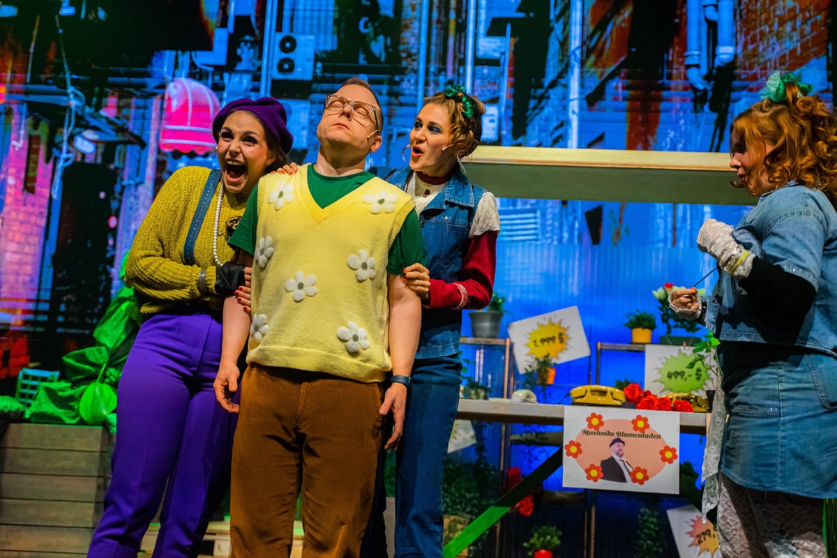 Der Blumenverkäufer Seymour hat wirklich kein Glück: seine Angebetete Audrey würdigt ihn keines Blickes, der Blumenladen steht kurz vor dem Bankrott. Bis er auf eine außergewöhnliche Pflanze stößt mit einem sonderbaren Appetit… Bunt, schrill und bitterkomisch entführt die unheilvolle Farce DER KLEINE HORRORLADEN tief in menschliche Abgründe und die Trash-Ästhetik der 80er Jahre – mit einem Thema, das nie aktueller war: Wie gehen wir eigentlich mit der Natur um? Und wieviel riskieren wir für den wirtschaftlichen Erfolg? Zur Musik des preisgekrönten Alan Menken (Komponist von Disney-Klassikern wie Aladdin oder Arielle, die kleine Meerjungfrau) geht DER KLEINE HORRORLADEN ins Ohr und unter die Haut.