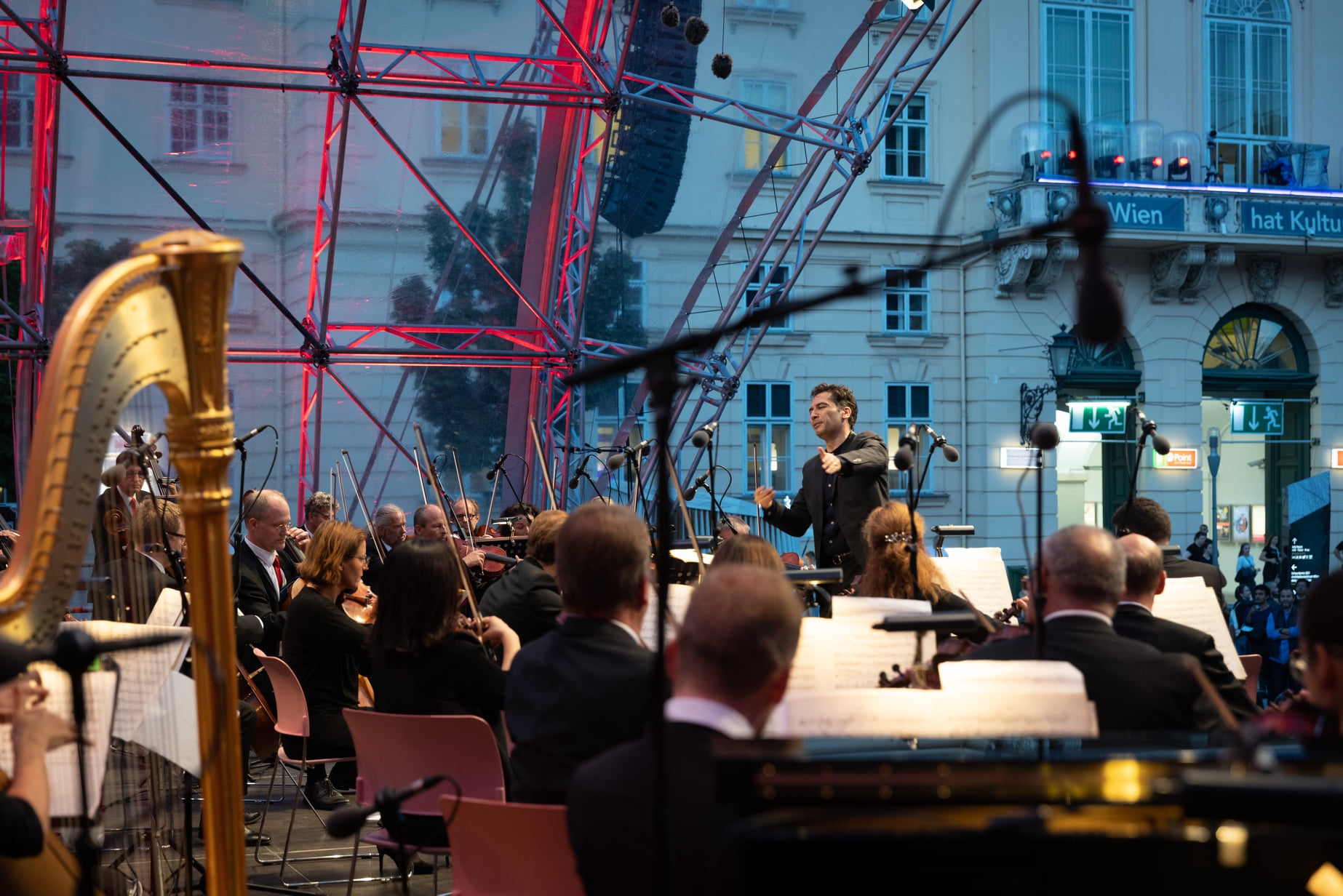Das prächtige Orchester verwandelte den Hauptplatz in den schönsten Konzertsaal unter freien Himmel und lud jeden zum entspannten Musikhören ein. Mit der schwungvollen Mischung, die von von Chefdirigent Andrés Orozco-Estrada zusammengestellt wurde, wurden Werke u.a. von Johannes Brahms, Erich Wolfgang Korngold, Nikolai Rimski-Korsakow und Josef Strauss präsentiert. Das sommerliche Highlight war für alle vor Ort gratis und war auch per Livestream für tausenden Zuschauer verfügbar.