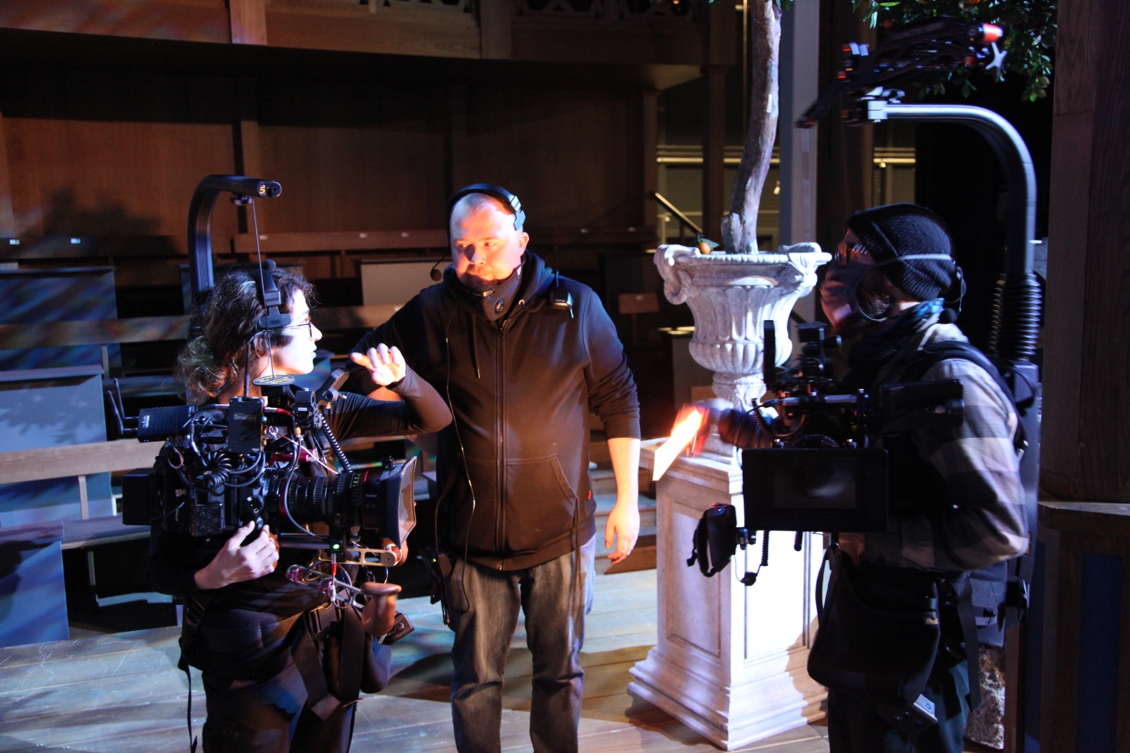 Treffpunkt 9:00 - Das ganze Team, bestehend aus Weitblickfilm, Bobo, Stagegear und PPE trifft im leeren Globe Wien ein. Die Vorbereitungen starten und die Bühne wird eingeleuchtet, Kameras werden hergerichtet, der Kamerakran positioniert und Mikrofone für die Darsteller werden bereit gelegt.